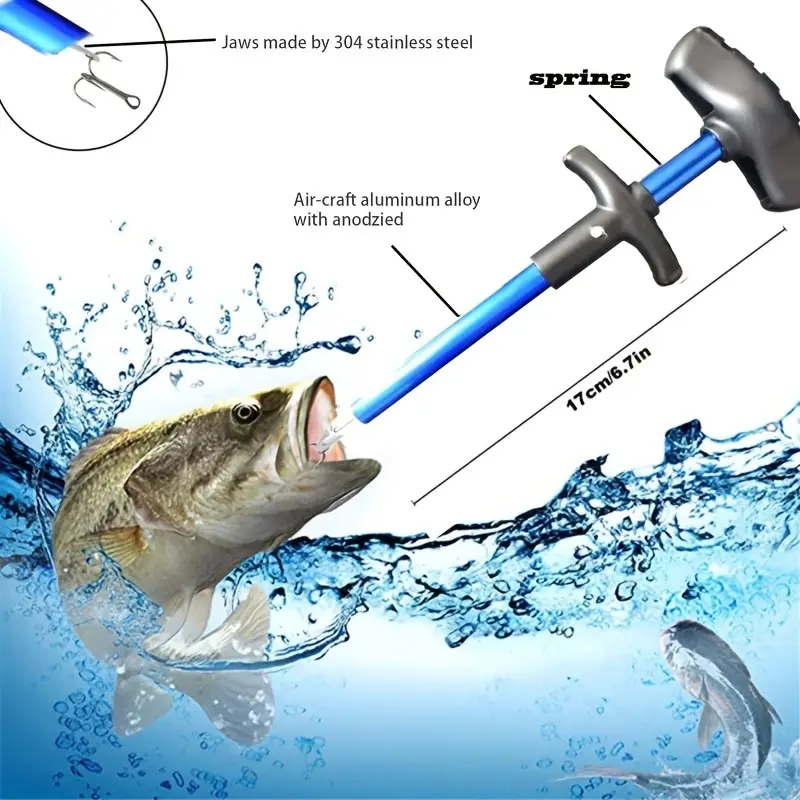 - سهولة الاستخدام: تسمح لك الأداة بالوصول إلى الخطافات العالقة بعمق في فم السمكة دون الحاجة للمسها باليد، مما يحميك من أي أسنان حادة أو زعانف شوكية.