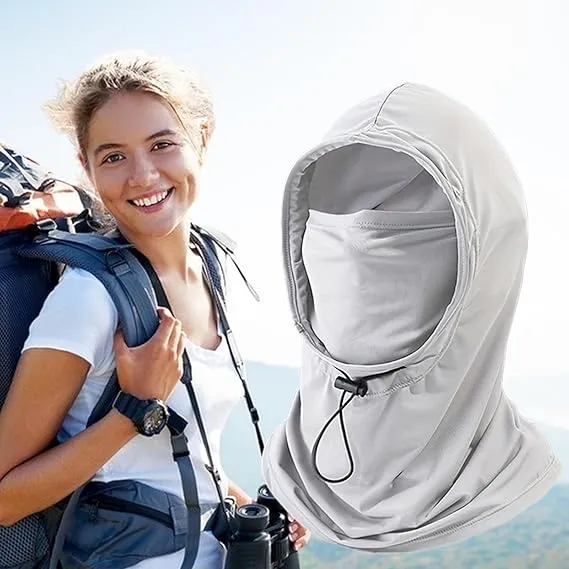 - حماية كاملة: يغطي الوجه، الرقبة، والرأس بالكامل، مما يوفر حماية ممتازة من أشعة الشمس فوق البنفسجية والعوامل الجوية القاسية.