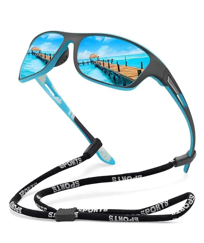 - الحزام الرياضي: أحد أبرز ميزات هذه النظارة هو وجود حزام أسود رياضي متصل بذراعَي النظارة. هذا الحزام يوفر تثبيتًا محكمًا للنظارة أثناء الحركة، ويمنعها من السقوط أو الانزلاق، مما يجعلها مثالية لممارسة رياضات مثل الجري، وركوب الدراجات، أو أي نشاط يتطلب حركة مستمرة. كلمة “SPORTS” المطبوعة على الحزام تؤكد على طابعها الرياضي.